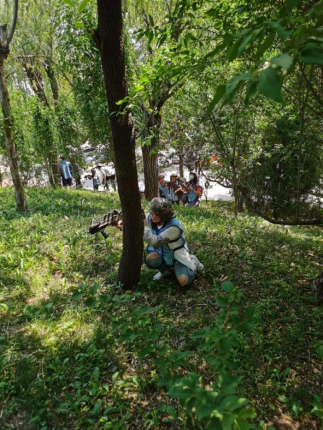 參與活動(dòng)的家庭在樹蔭下搭起帳篷